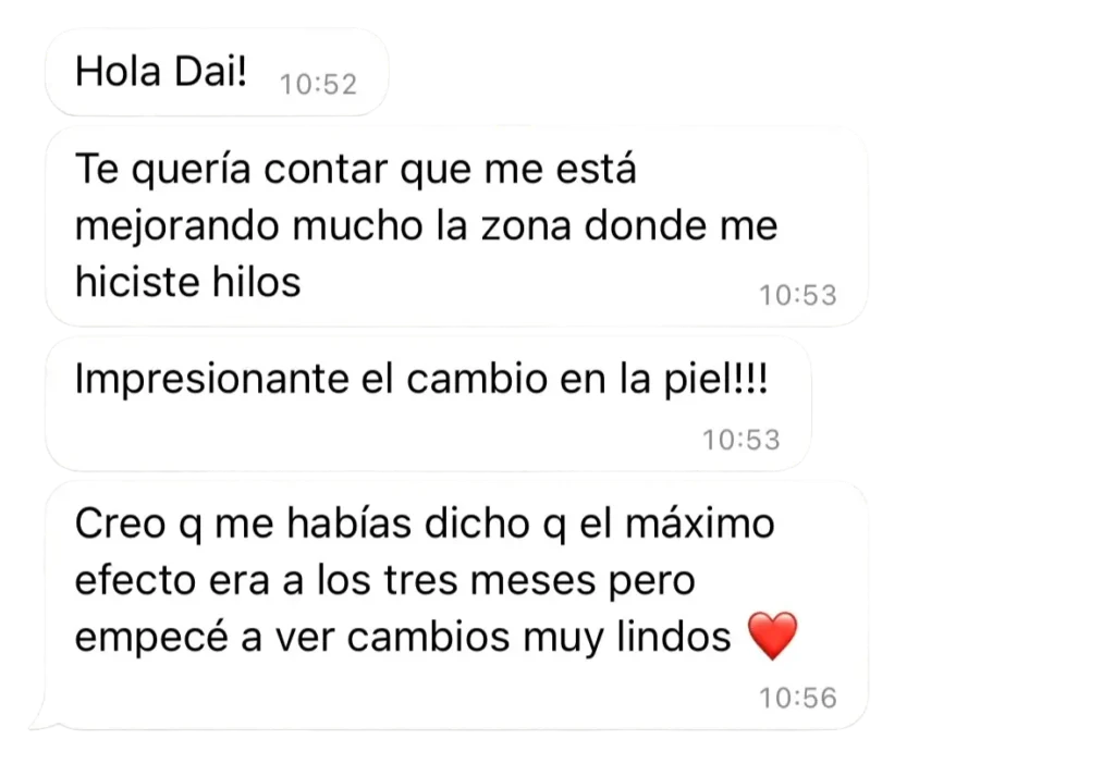 Mi experiencia fué muy buena . Bien la explicación de la Dra Diana. A la semana volví a hacerme el tratamiento...muy conforme. Y seguiré